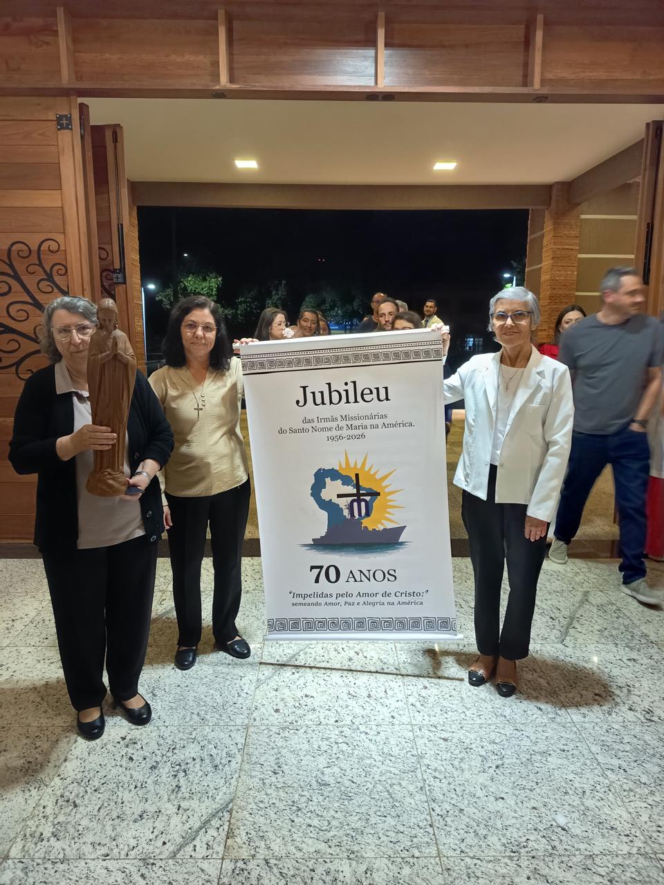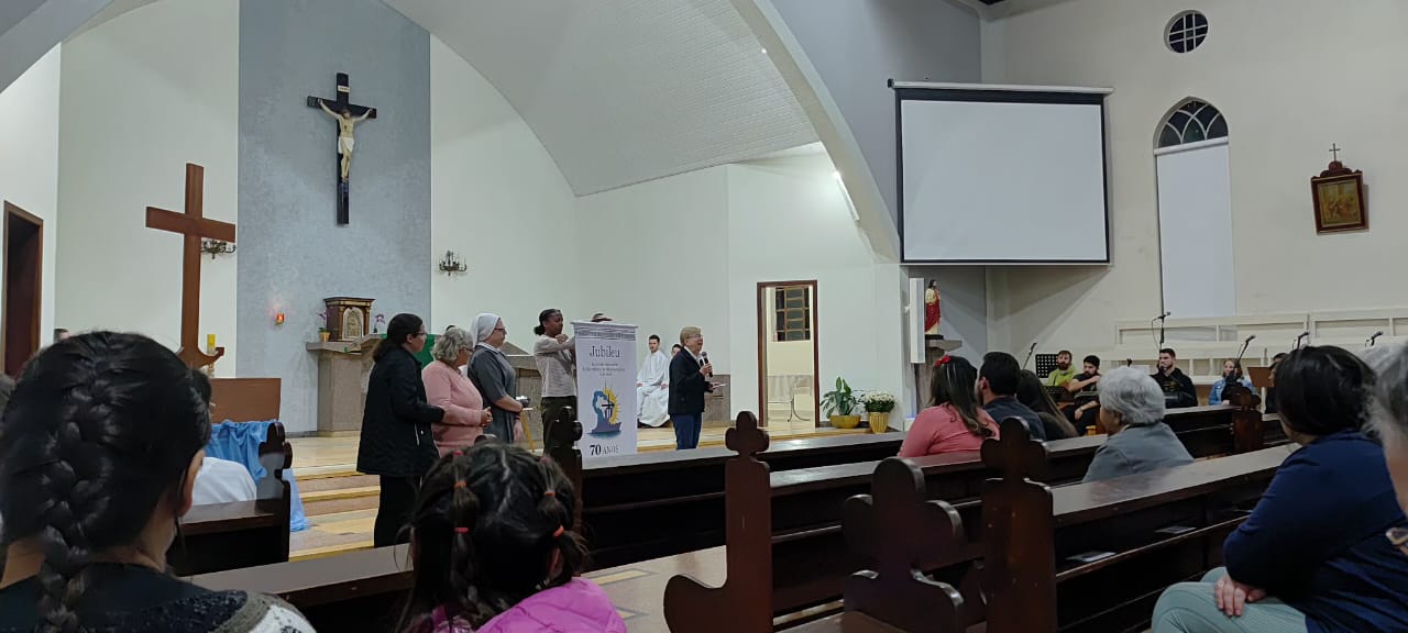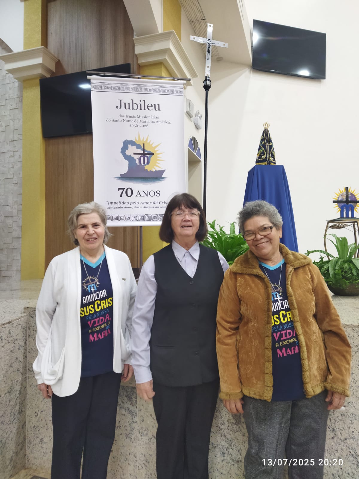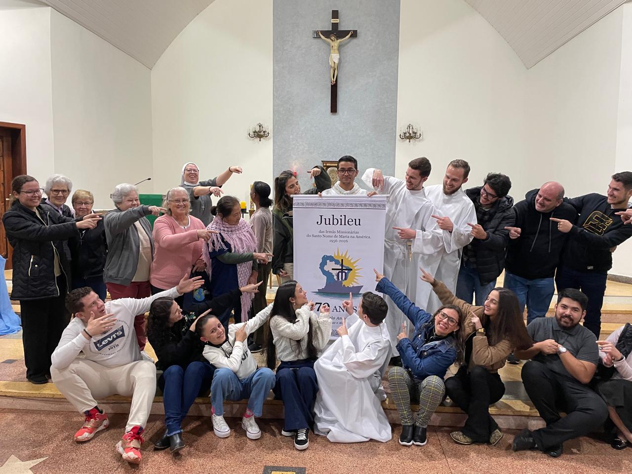 De 12 de julho de 2025 a 12 de julho de 2026, a nossa Congregação estará vivenciando o Ano Jubilar de 70 anos de presença das Irmãs Missionárias do Santo Nome de Maria na América. Por isso, com muita alegria e gratidão a Deus, nesse final de semana (12 e 13 de julho de 2025) as Comunidades das nossas Irmãs celebrou juntamente com os Leigos Missionários do Santo Nome de Maria e todo o povo de Deus a abertura do nosso Jubileu. Temos muito para agradecer a Deus. O Jubileu de 70 anos é uma grande oportunidade de celebrar o grande legado que nossas primeiras Irmãs Missionárias nos deixaram e reforçar o nosso empenho em dar continuidade à missão de fé, amor e serviço.