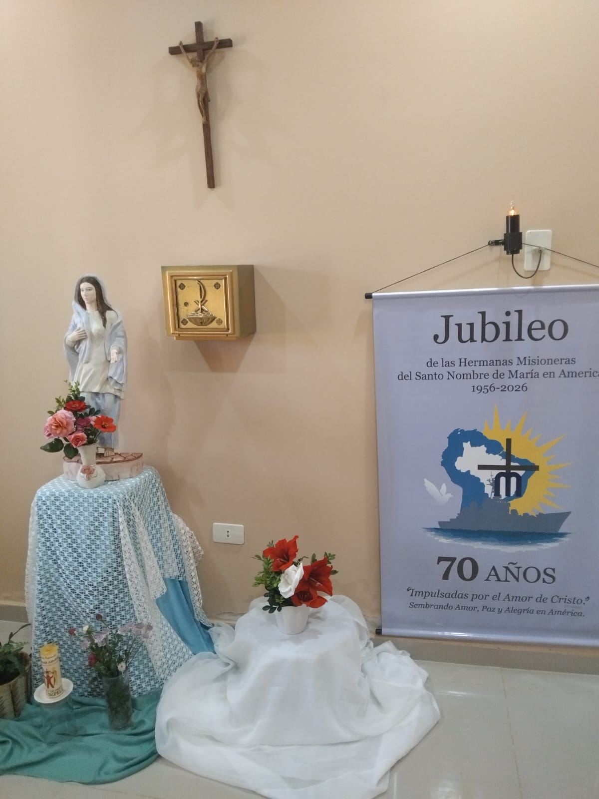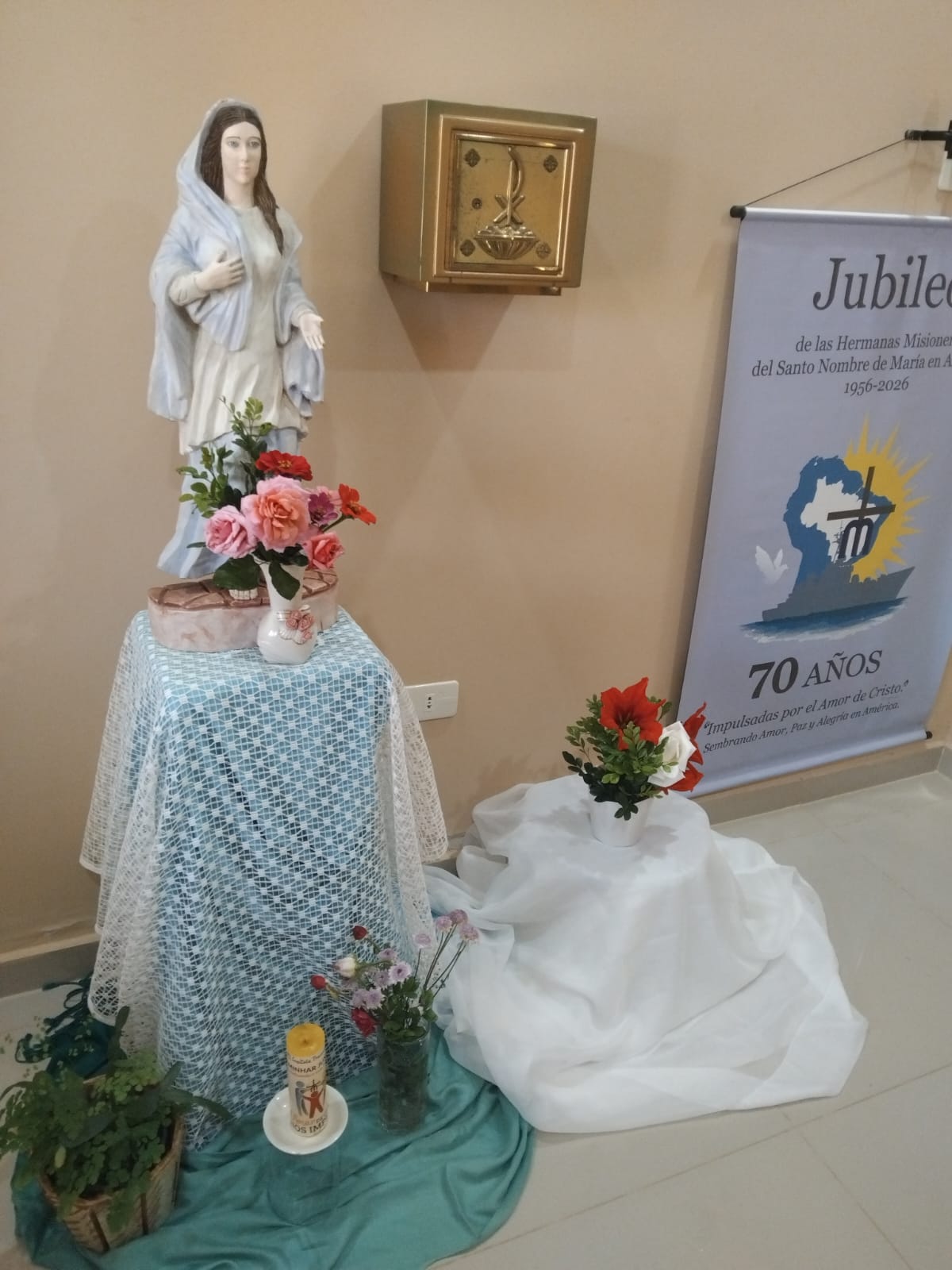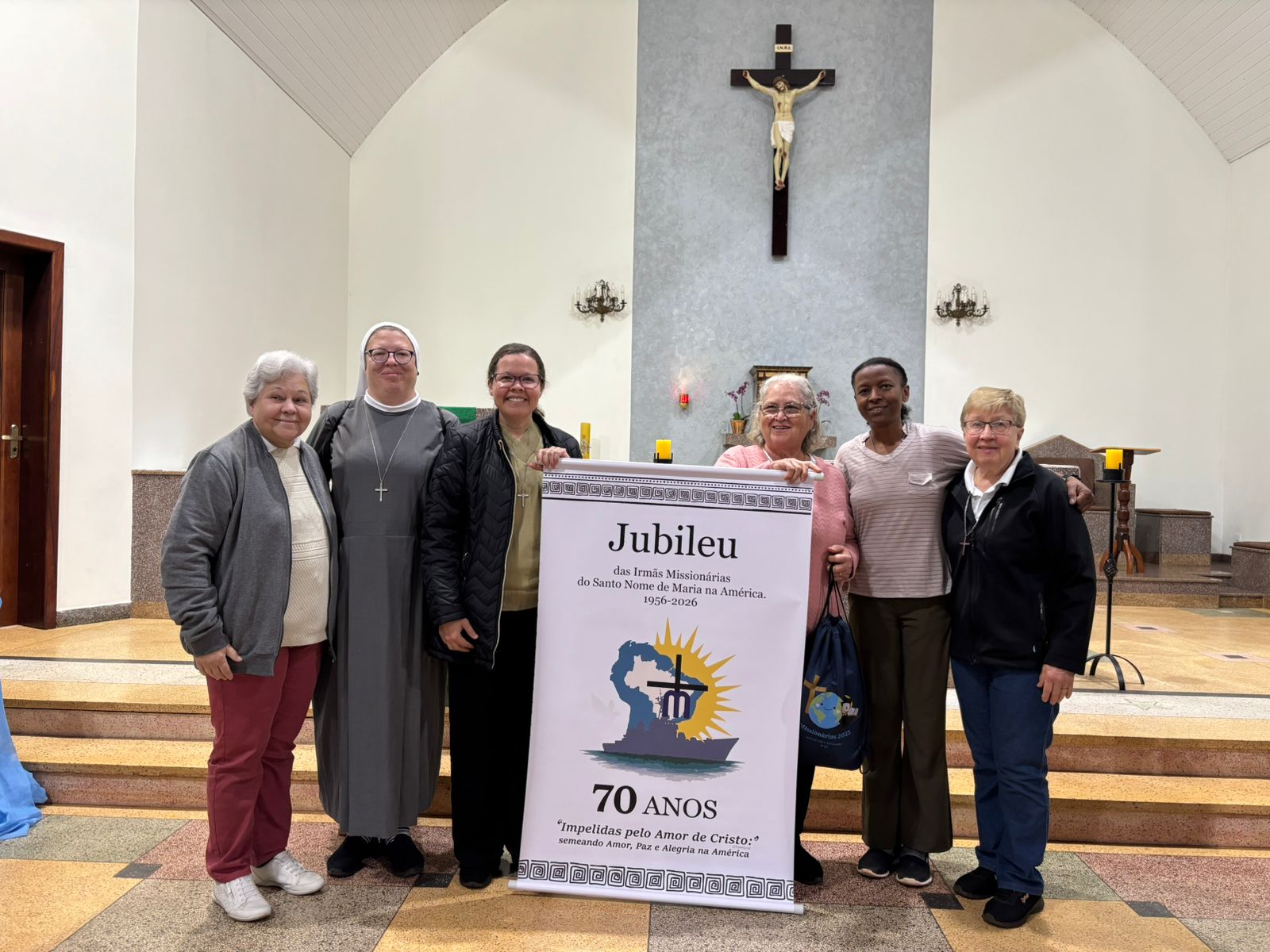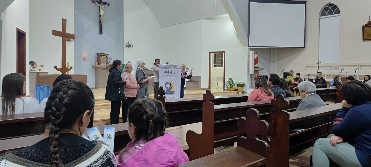 De 12 de julho de 2025 a 12 de julho de 2026, a nossa Congregação estará vivenciando o Ano Jubilar de 70 anos de presença das Irmãs Missionárias do Santo Nome de Maria na América. Por isso, com muita alegria e gratidão a Deus, nesse final de semana (12 e 13 de julho de 2025) as Comunidades das nossas Irmãs celebrou juntamente com os Leigos Missionários do Santo Nome de Maria e todo o povo de Deus a abertura do nosso Jubileu. Temos muito para agradecer a Deus. O Jubileu de 70 anos é uma grande oportunidade de celebrar o grande legado que nossas primeiras Irmãs Missionárias nos deixaram e reforçar o nosso empenho em dar continuidade à missão de fé, amor e serviço.